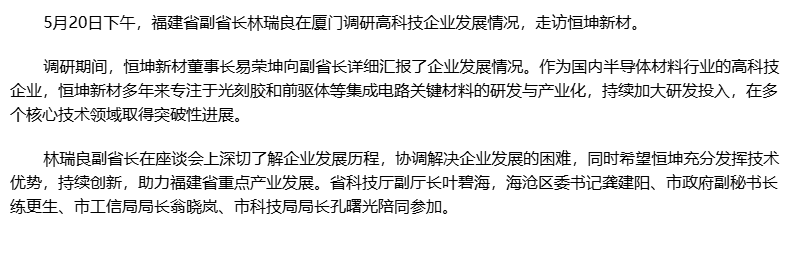 快訊 | 副省長(zhǎng)林瑞良走訪恒坤新材